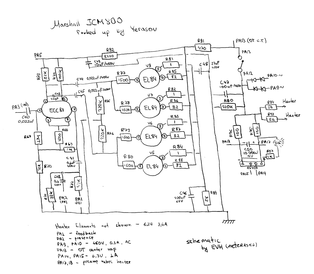 ÏÀÖÀÍÛ, Ìàðâåë ñ ðàññ÷åòîì íà Ìàðøàëë ÍÈ Â ÊÎÅÌ ÑËÓ×ÀÅ áðàòü íåëüçÿ. ÝÒÎ ÈÑÒÈÍÀ ÈÑÒÈÍ. Ñõåìû ñîâñåì ðàçíûå. Äà, åñòü Ìàðøàëë íà EL84, 18watt èëè 36watt mod - âñå-îäíî. Ãëÿäèì ñõåìó îêîíå÷íèêà Ìàðâåëà (òàì ïðàâäà åñòü íåáîëüøàÿ îøèáî÷êà â ñåêöèè ïèòàíèÿ, ãûãû, íî íå ñóòü) Òåïåðü íàõîäèì ñõåìó JCM800 2203 è ãëÿäèì îòëè÷èÿ. Íåâîîðóæåííûì ãëàçîì ##### âèäíî, ÷òî îäíà ñõåìà ýòî òðó Ìàðøàëë, à âòîðàÿ - êàê åñòü, âëîáíûé ñìèðåííî-ïðàâîñëàâíûé ñîâî÷åê-åðàñîâ. ß òî çíàþ êàê äîäåëûâàòü Ïðèäåòñÿ âûêèíóòü åðàñîâûå òðàíñû íà ïîìîéêó. Îáà. Ñäåëàòü ñâîè, íîðìàëüíûå.  èòîãå: åñëè òû âîçüìåøü Åðàñîâ-ìàðâåë òî ìîä îáîéäåòñÿ åùå â 10-15 òûñÿ÷ è ÊÓ×Ó ÑÈË È ÂÐÅÌÅÍÈ. È íå êàæäûé ìàñòåð âîçüìåòñÿ çà ýòî! È íå ó êàæäîãî ïîëó÷èòñÿ. Ïîòîìó ÷òî íå âñå øàðÿò. ÊÎÐÎ×Å äåðæèòåñü â ñòîðîíêå îò ýòîé øàðàøêè åðàñîâ. Ó íèõ íåò íè÷åãî äîâåäåííîãî äî ñîâåðøåíñòâà. Íèêàêîãî ñòðåìëåíèÿ. |