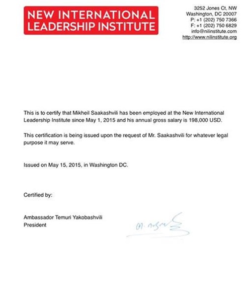 Ñààêàøâèëè âûëîæèë ñïðàâêó î ñâîèõ äîõîäàõ. Îðãàíèçàöèÿ,êîòîðàÿ âûäàëà ñïðàâêó - íå âåäåò íèêàêóþ äåÿòåëüíîñòü,çàðåãèñòðèðîâàíà çà äåíü äî òîãî êàê Ìèøèêî íà÷àë òàì "ðàáîòàòü",è ïîäïèñü ïîäòâåðæäåíèÿ ïîñòàâëåíà Òèìóðîì ßêàáîøâèëè,êîòîðûé ðàáîòàë ó Ñààêàøâèëè ñîâåòíèêîì è ìèíèñòðîì. Âîîáùåì äîñòîéíûé ïðèìåð áîðüáû ñ êîððóïöèåé è êóìîâñòâîì.