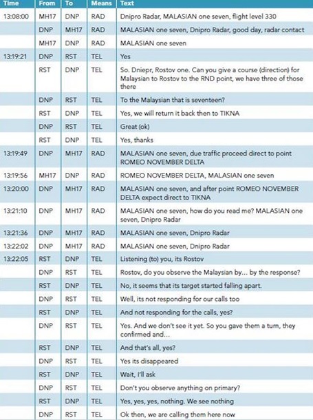 | All you need is love.  | >ß òåáÿ åù¸ ðàç ñïðàøèâàþ, òû ÷èòàë ïðåäâàðèòåëüíûé îò÷åò ñëåäñòâåííîé êîìèññèè â Íèäåðëàíäàõ. À òû ÷èòàëà? Î ÷¸ì ãîâîðèëè äèñïåò÷åðà ñ ïèëîòàìè è òàê äàâíî èçâåñòíî.   DNP ê RST: Äëÿ Ìàëàéçèéñêèõ, êîòîðûå ñåìíàäöàòü? RST ê DNP: Äà, ìû âåðíåì èõ îáðàòíî ê TIKNA DNP ê RST: Îòëè÷íî (îê) RST ê DNP: Äà, ñïàñèáî 13:19:49 DNP ê MH17: Ìàëàéçèéñêèå îäèí ñåìü, íàïðàâëÿéòåñü ïðÿìî ê òî÷êå ROMEO NOVEMBER DELTA 13:19:56 MH17 ê DNP: ROMEO NOVEMBER DELTA, Ìàëàéçèéñêèå îäèí ñåìü 13:20:00 DNP ê MH17: Ìàëàéçèéñêèå îäèí ñåìü, è ïîñëå òî÷êè ROMEO NOVEMBER DELTA îæèäàéòå íàïððàâëåíèå ê TIKNA 13:21:10 DNP ê MH17: Ìàëàéçèéñêèå îäèí ñåìü, êàê âû ìåíÿ ïîíÿëè? Ìàëàçèéñêèå îäèí ñåìü, Äíåïð Ðàäàð 13:21:36 DNP ê MH17: Ìàëàéçèéñêèå îäèí ñåìü, Äíåïð Ðàäàð 13:22:02 DNP ê MH17: Ìàëàéçèéñêèå îäèí ñåìü, Äíåïð Ðàäàð 13:22:02 RST ê DNP Ñëóøàþ âàñ, ýòî Ðîñòîâ DNP äî RST: Ðîñòîâ, âû íàáëþäàåòå Ìàëàéçèéñêèå ... îòíîñèòåëüíî îòâåòà? RST ê DNP: Íåò, ïîõîæå, öåëü ñòàëà ðàñïàäàòüñÿ DNP äî RST: Íó, íà íàøè âûçîâû òîæå íåò îòâåòà RST ê DNP: È íå îòâå÷àåò íà âûçîâû, òàê? DNP äî RST: Äà. È ìû ñåé÷àñ íå âèäèì. Âû äàëè èì ïðèåì, çàòåì ïîäòâåðäèëè è ... RST ê DNP: È ýòî âñå, äà? DNP äî RST: Äà, îí èñ÷åç RST ê DNP: Ïîäîæäèòå, ÿ ñïðîøó DNP äî RST: Âû íè÷åãî íå íàáëþäàåòå íà îñíîâíîì? RST ê DNP: Äà, äà, äà, íè÷åãî. Ìû íè÷åãî íå âèäèì DNP äî RST: Îê, òîãäà áóäåì âûçûâàòü èõ îòñþäà.   À ÿ ãîâîðþ î äîïðîñå äèñïåò÷åðà. | |